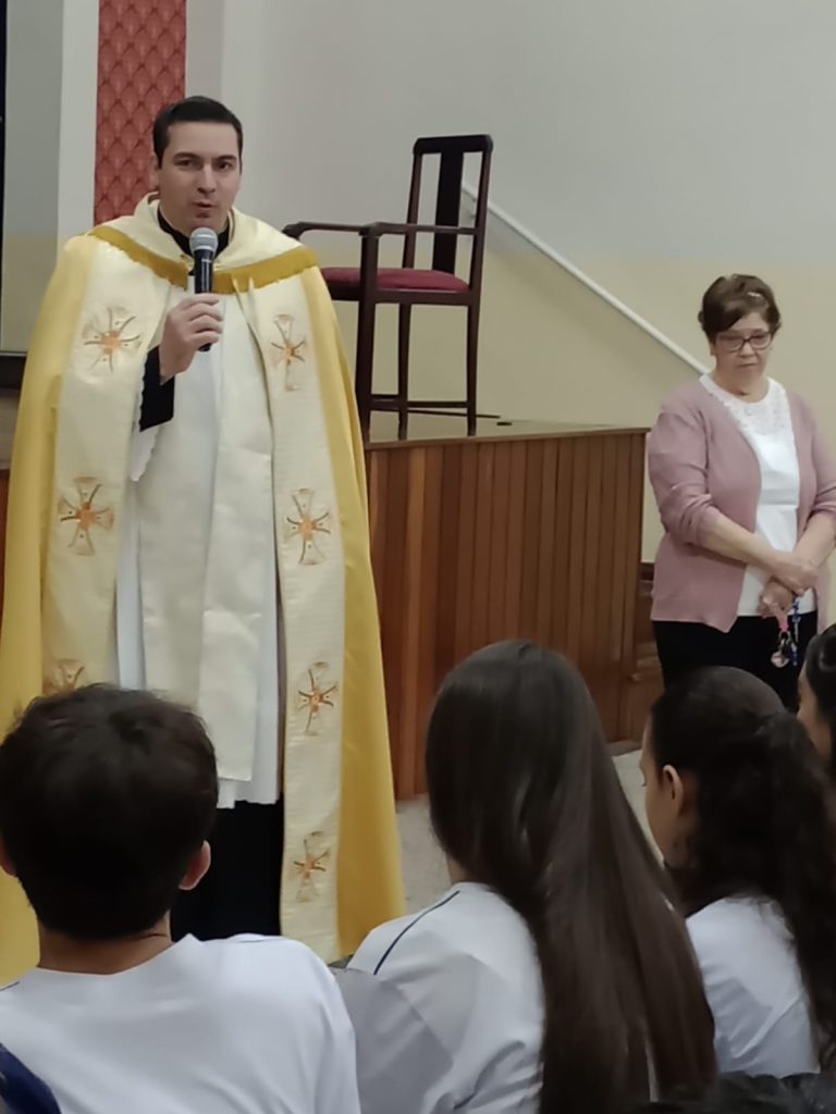 Momento de Adoração ao Santíssimo Sacramento, com a participação de alunos, professores e funcionários do Placidina Colégio Católico, seguindo a orientação do Santo Padre, o Papa Francisco, que pediu para dedicarmos o dia de hoje ao jejum, penitência e oração pela PAZ mundial.