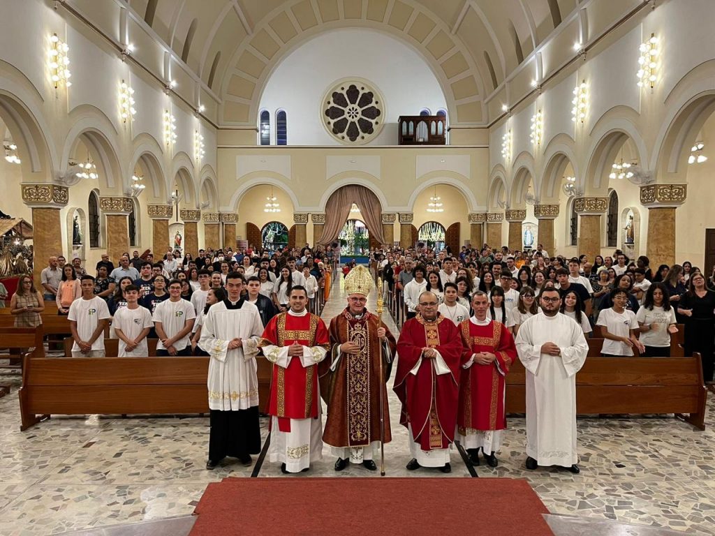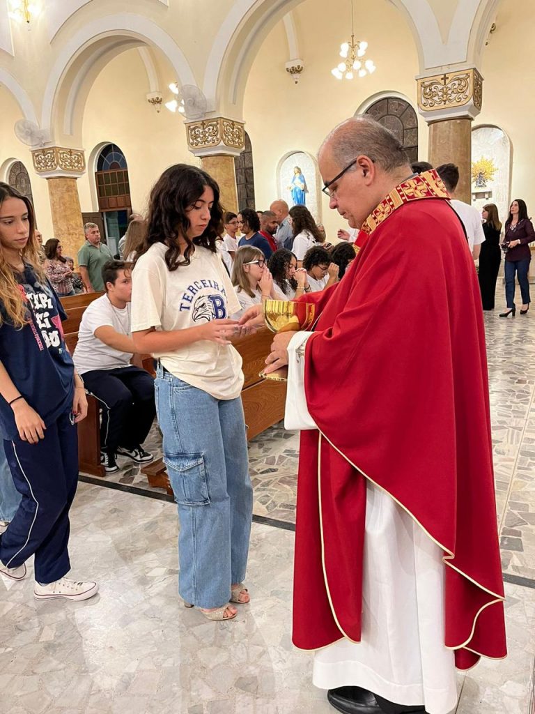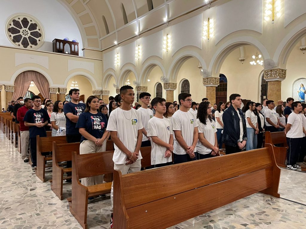 Na última quarta-feira (13), os alunos dos 9º anos do Fundamental II e da 3ªs séries do Ensino Médio e familiares participaram da Missa de Ação de Graças ao encerramento dessas etapas formativas na Catedral de Sant’Ana. Foi uma noite especial, pois nossos alunos celebraram, na presença de Deus, mais uma conquista de muitas que ainda estão por vir.