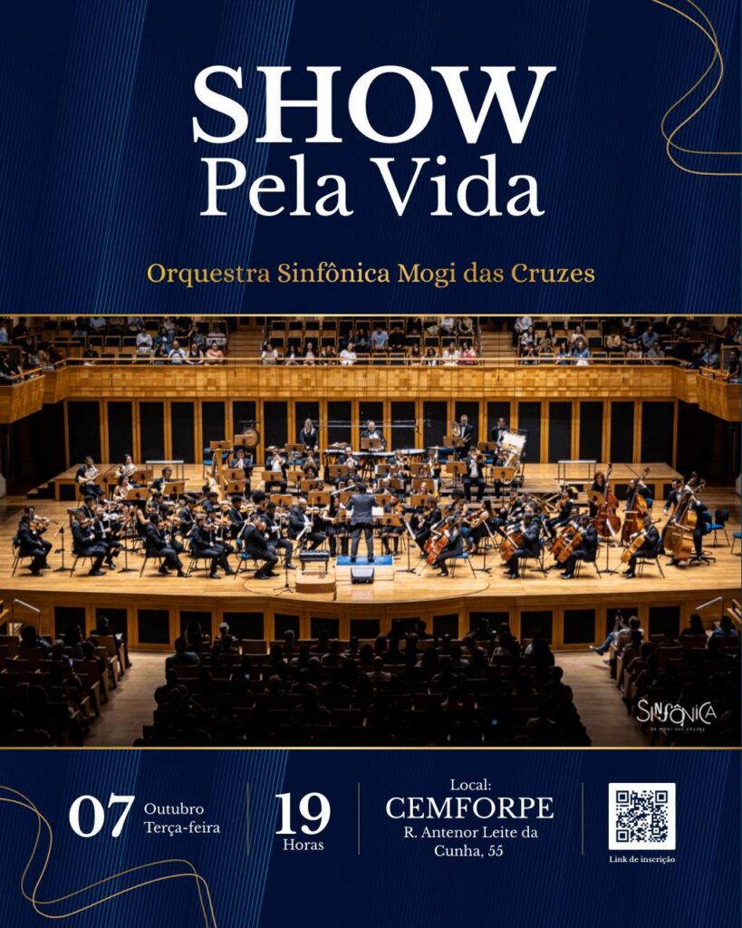 Mogi das Cruzes receberá, no dia 07 de outubro de 2025, às 19h, uma noite memorável com a Orquestra Sinfônica no CEMFORPE, em uma apresentação repleta de arte, beleza e emoção. Harmonizada com histórias reais que refletem a preciosidade e o impacto de cada vida, o Show pela Vida será uma oportunidade única de reunir música e inspiração, convidando o público a reconhecer e celebrar a dignidade da existência humana em todas as suas fases.